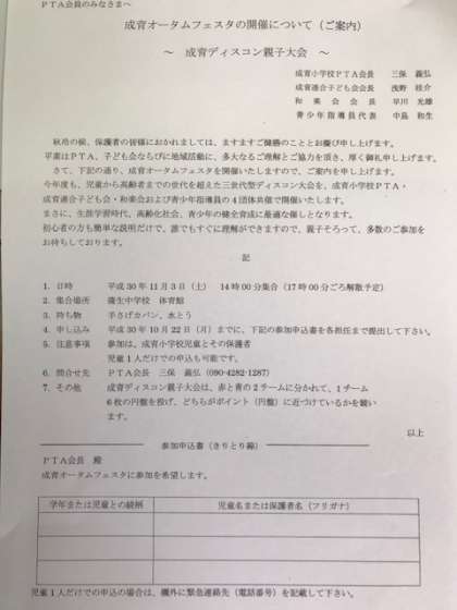 PTAからのお知らせです。