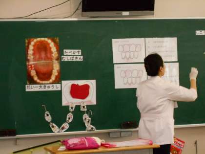 昨日、11月7日(水)に、学校歯科医の先生と歯科衛生士の方に、2年生の歯みがき指導をしていただきました。