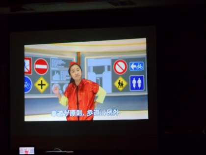 DVDの映像を見て、「自転車は車と同じなかま」ということをしっかりと理解することができました。体操やラップの曲に合わせ、楽しみながら交通安全について、学習することができました。