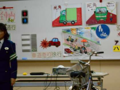 城東警察の方に来ていただき、1年生と4年生に、交通安全指導をしていただきました。
