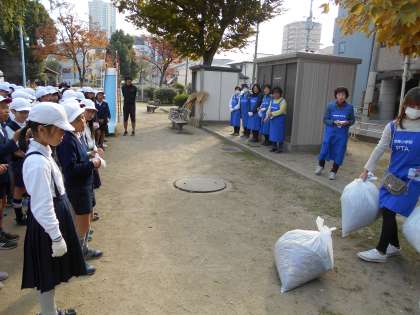ごみも少なく、ほとんど落ち葉でした。日ごろからこまめにお掃除をしてくださる方がいるのだなと、こどもたちと感謝しながら学校へ戻りました。