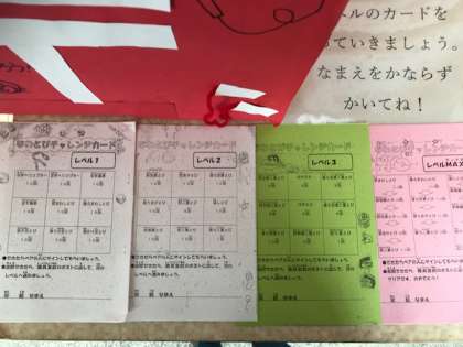 今週から運動委員会のよびかけで、全校児童が、「なわとびチャレンジカード」に挑戦しています。