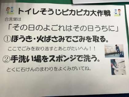 清掃時間に教職員も清掃のしかたを指導したり、一緒に清掃をしたりしていますが、共通の掲示物があればいいのでは・・・。と考えました。