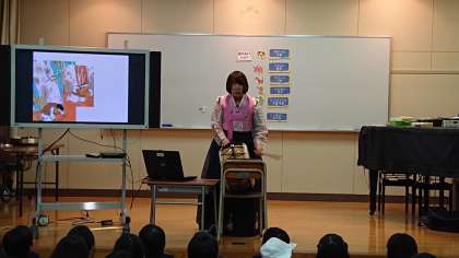 楽器の意味や言葉、あそびなどを教わり、民話を聞かせていただき、楽しい時間をすごしました。