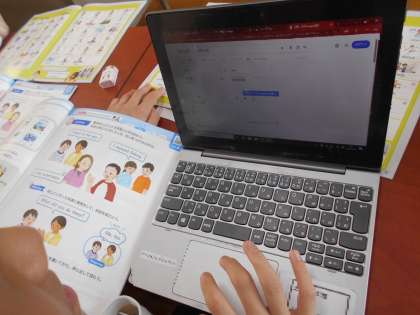 6年生の英語「UNIT4 My summer vacation」の学習です。「What did you do in summer?」に対して、「I went to 〜.」と、夏休みに行ったことを隣りの友だちと伝え合ったりして、意欲的に学習していました!