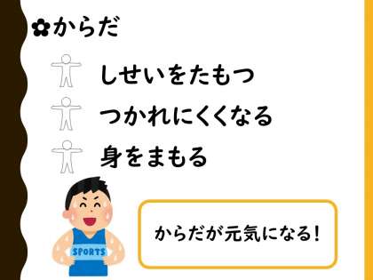 3年生の発育測定後に『運動』についての保健指導を行いました。運動をすると、疲れにくくなったり、気持ちがすっきりしたりして、体や心、脳に良い影響を与えます。指導の中で、教室でできる運動遊びを体験してみました。今は運動場が狭かったり、暑い日が続いたりして、外で体を動かす機会が少なくなりがちですか、日常的に体を動かすように工夫しましょう。