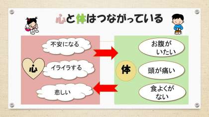 5年生の発育測定後に、「心の健康」の保健指導をしました。日々プレッシャーや葛藤に向き合うことで、少しずつ心が成長していく時期です。けれどストレスを抱え込み過ぎてしまわないよう、対処法を考えました。ポジティブにとらえる、好きなものを食べる、とことん向き合って自信をつける、家族に相談して励ましてもらう、などいろんな意見がでました。どれもいいですね。