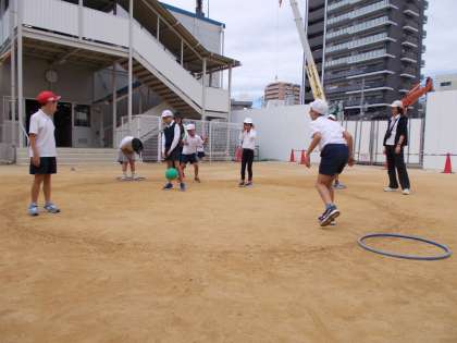 お天気が良かったので、運動場でしっぽとり、タイヤじゃんけん、転がしドッジをしました。久しぶりの外での活動でしたが、それぞれのゲームのルールを守って楽しく活動することができました。活動の最後に「体いっぱい動かせた人?」と聞かれると、みんな満面の笑みで「はーい!」と返事していましたよ。