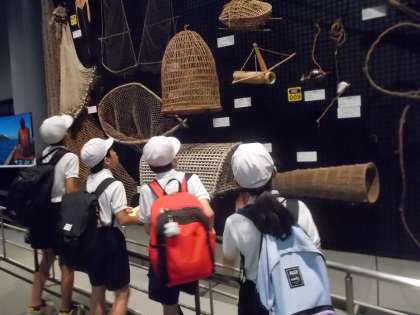 秋の校外学習で万博記念公園に行きました。まず、目に入ったのは大きな太陽の塔。想像以上の大きさに子どもたちは驚いていました。国立民族学博物館では、世界のさまざまな国の言語や文化、音楽などにふれ、知らなかったことをたくさん学ぶことができました。