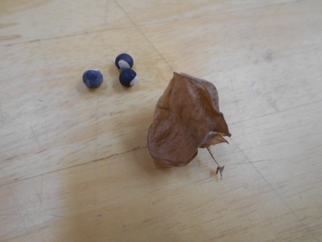 ふうせんかずらの種ができたので、みんなで見に行き、一つたねを取りに行きました。