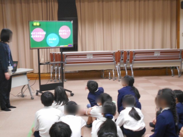 1月13日(火)に4年生の発育測定と保健指導を行いました。保健指導のテーマは「体の不調と生活習慣」です。頭痛や腹痛などの体調不良の原因には病気だけではなく、生活習慣の乱れもあることを学びました。「早寝早起きをしている」や「毎日必ず運動するようにしている」、「好き嫌いせずに食べている」など、健康のために工夫している児童がたくさんいました。