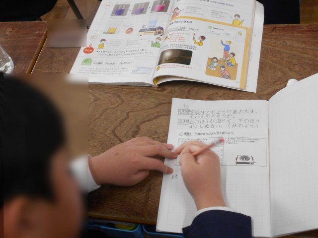 4年生の理科「空気のあたたまり方」の学習の様子です。