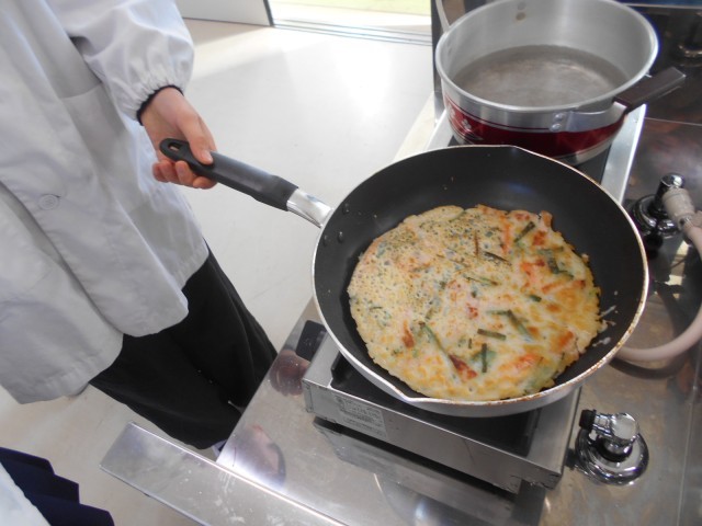 洗う、切る、こねる、混ぜる、焼くなど、グループで協力して楽しく活動していました。