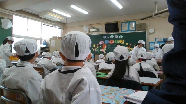 始業式を終え、昨日より給食が始まりました。1年生は、お手伝いに来てくれた6年生の様子を懸命に見て学んでいました。しばらくは、毎日、6年生がお手伝いをします。