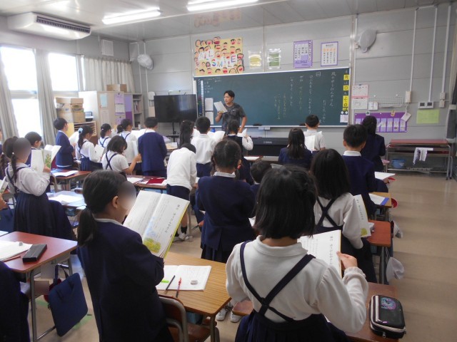 手振り身振りで様子を表しながら、みんなで考えを共有し、学習の最後には、様子や気持ちが表れるように工夫して読みました。