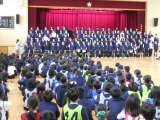 「ありがとうの花」をジェスチャ—をつけて披露し、最後に1年生全員で「6年生!だ...