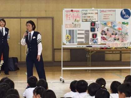 城東警察の方に来ていただき交通安全指導をしていただきました。