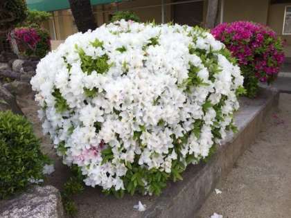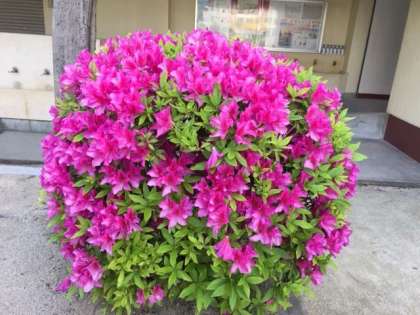 校庭のツツジが満開を迎えています。葉っぱや幹が見えないくらいに花を咲かせています。