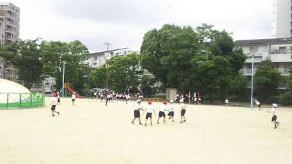 初めに遊具の安全な使い方や公園での遊び方のルールを確認し、そのあと友だちと元気に遊びました。