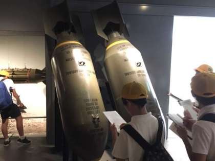 ピース大阪では、空襲で落とされた1トン爆弾の大きさに驚いていました。防空壕の体験コーナーや、展示物を見て空襲や戦争の恐ろしさや悲惨さを感じることができました。また、学童疎開の映画を見て当時の子どもたちのつらさや苦労を知ることができました。