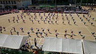 秋晴れの下、すみれ小学校の運動会が始まりました。
