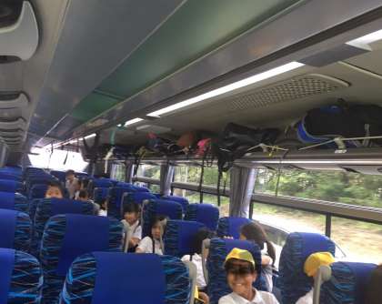 バスの中ではバスレク係のクイズで盛り上がっています。