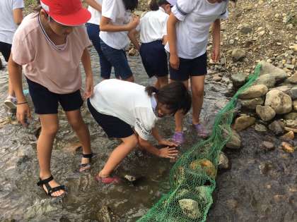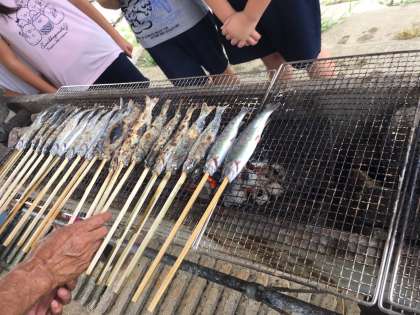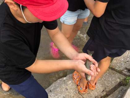 魚つかみをしました。魚がすばしっこくて捕まえるのが難しかったです。