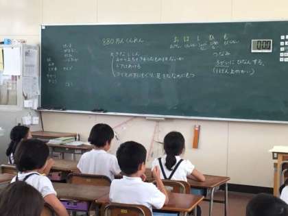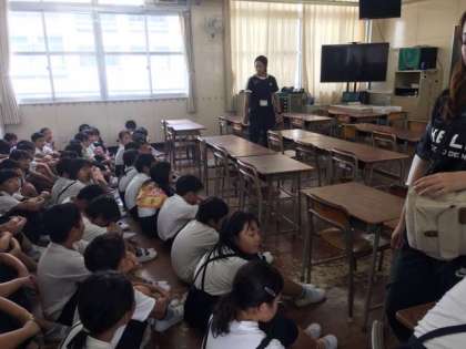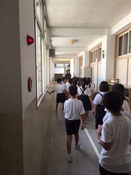 児童は、大地震が発生したことを想定し机の下に身を隠して自分の命を守る訓練をしました。そのあと、津波が発生したことを想定し、校舎の3階に避難する訓練をしました。