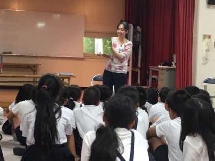 ブックトークのあとストーリーテーラーの方に「三枚のおふだ」のお話をしてもらいお話の世界に親しむことができました。