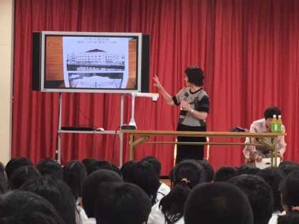 地域の方に来ていただき、6年生にすみれ地域の歴史や国技館、戦争などについて講話をしていただきました。