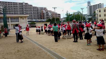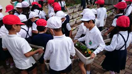 1年生が、「すみれ花フレンズ」の皆さんと一緒に、チューリップの球根やパンジーの苗を植えました。