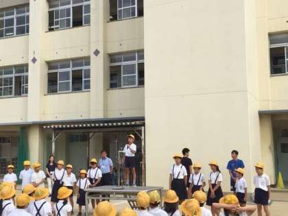 児童朝会で、代表委員会が土曜授業のふれあい清掃で集まったごみを紹介しました。みんなが頑張ったので、たくさんのごみが集まりました。保護者の皆様もご協力いただきありがとうございました。