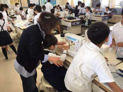 10月16日から3日間、地域ボランティアの方に来ていただき5年生が家庭科のエプロンづくりをしました。