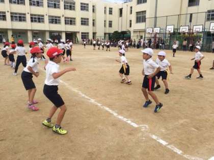 2年生は体育で「ボール運びおに」をしました。保護者も参加して大盛り上がりでした。
