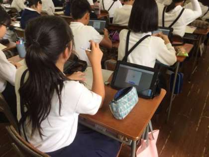 6年生はタブレットでプログラミングを学習したり、国語で外来語の学習をしました。