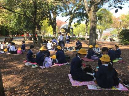 グループで昼食を食べました。たくさん歩いたのでご飯がおいしかったです。