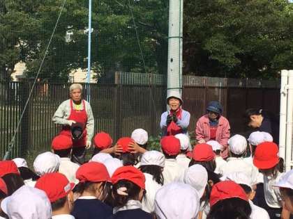 すみれ花フレンズの方に来ていただき2年生が芋ほりをしました。