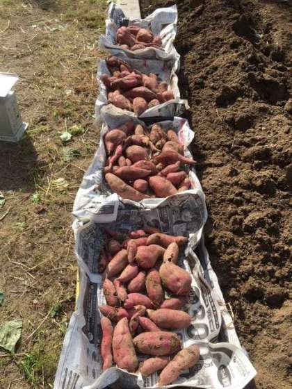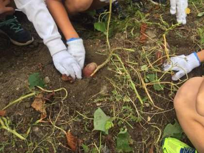 すみれ花フレンズには土づくりからしていただき、6月にサツマイモの苗を植えました。5か月後サツマイモ畑にはたくさんのイモができていました。子どもたちは大きなサツマイモを掘り出して大喜び。獲れたイモは全部で40kgもありました。