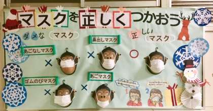 正しいマスクの付け方をして風邪や感染症の予防できるようにお家でも声をかけてください。