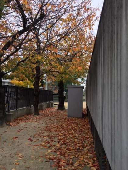 校庭の桜の木も葉っぱもすっかり色づき地面は落ち葉で埋め尽くされています。
