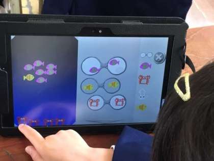 3年生がタブレットを使ってプログラミングに取り組んでいました。