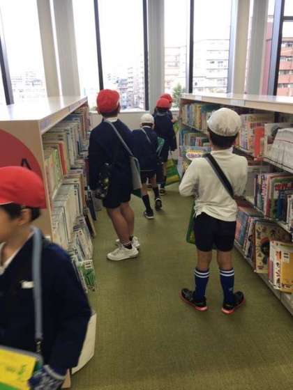 2年生が生活科の学習で城東図書館の見学に行きました。