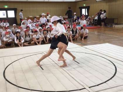 今日は3年生と4年生が対戦し交流をしました。さすがに4年生が勝つことが多かったですが中には4年生を負かす3年生もいて講堂は白熱していました。寒い季節ですがすもうを取ると心も体もぽかぽかになっているようでした。