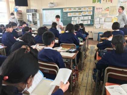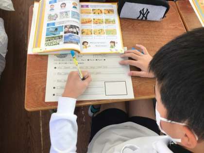 今日の授業は「6年生の思い出」について英語で書いてスピーチをしました。ネイティブティーチャーのラース先生に思い出についての書き方を教えてもらいワークシートに書いたものを発表していきました。