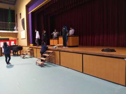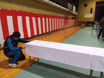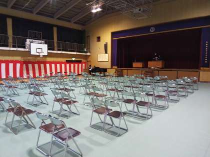 今年から会場にシート敷その上に椅子を配置しました。例年とは違う形の卒業式になりますが美しい会場が完成しました。