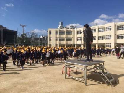 校長先生からはすみれ小学校の校訓通りに健康に気をつけて周りの人と仲良く、挨拶などをしっかりするようにとお話がありました。