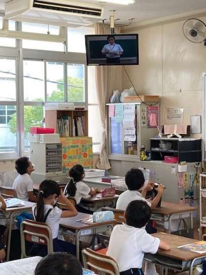 校長先生からは千羽鶴に込められた願いについてお話があり、全校児童に平和を願いながら鶴を折るようにと呼びかけました。
