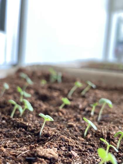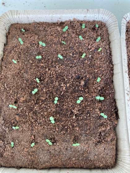 以前にホームページでお知らせしました通り、「すみれの種まき」期間中、各クラスでピートバンに「ビオラ」の種をまきました。現在、発芽が進んでおり、ピートバンからはかわいらしい芽が出てきました。中には双葉に成長したものもあります。