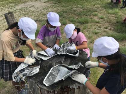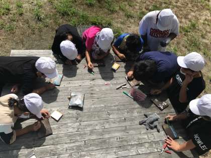焼き板工作をしました。板についているすすをきれいに落としてから、板に絵を描いていきます。すすを落とすのが大変です。