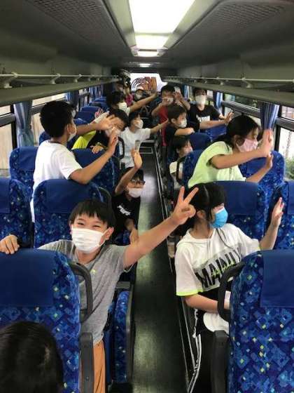 宿舎を出発しました。たくさんの思い出を作った琵琶湖青少年の家ともお別れです。